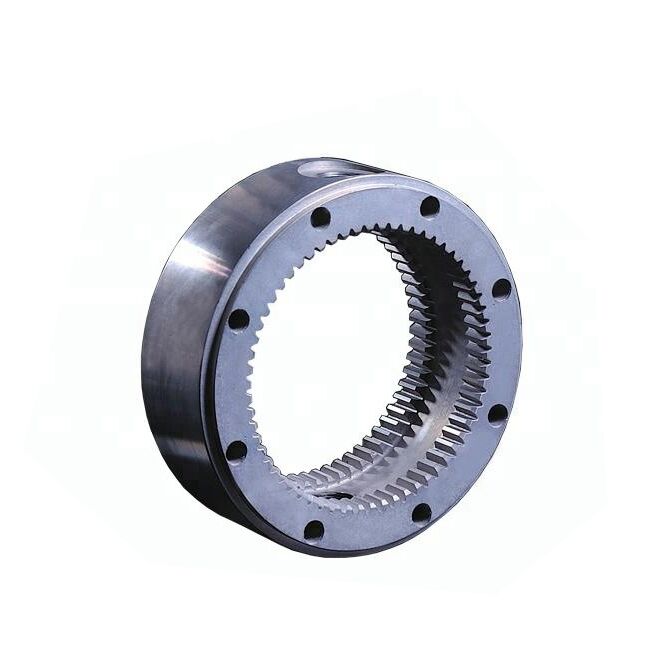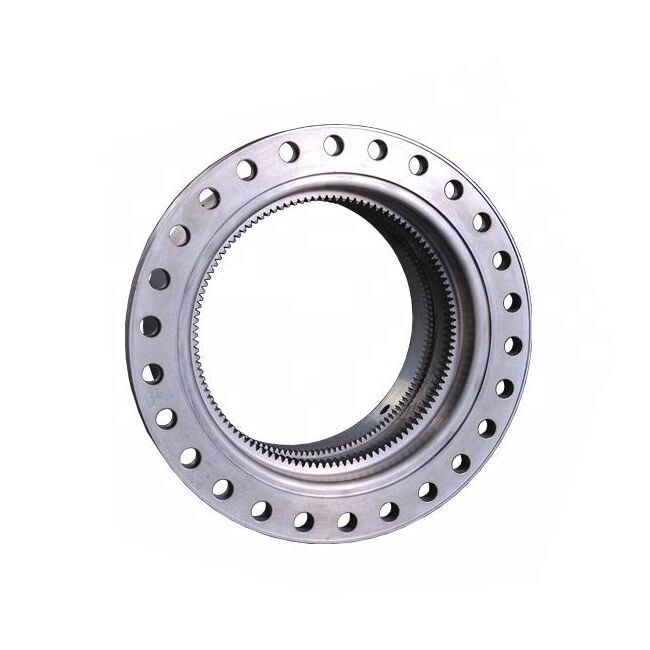An annular gear having teeth on the inner surface of its rim. The interla gear always meshes with an external gear.